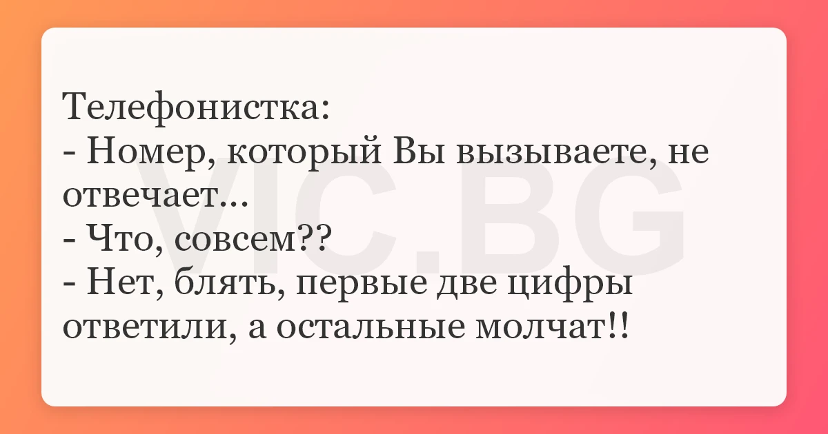 - Нет, бляtь, первые две цифры ответили, а остальные молчат!!