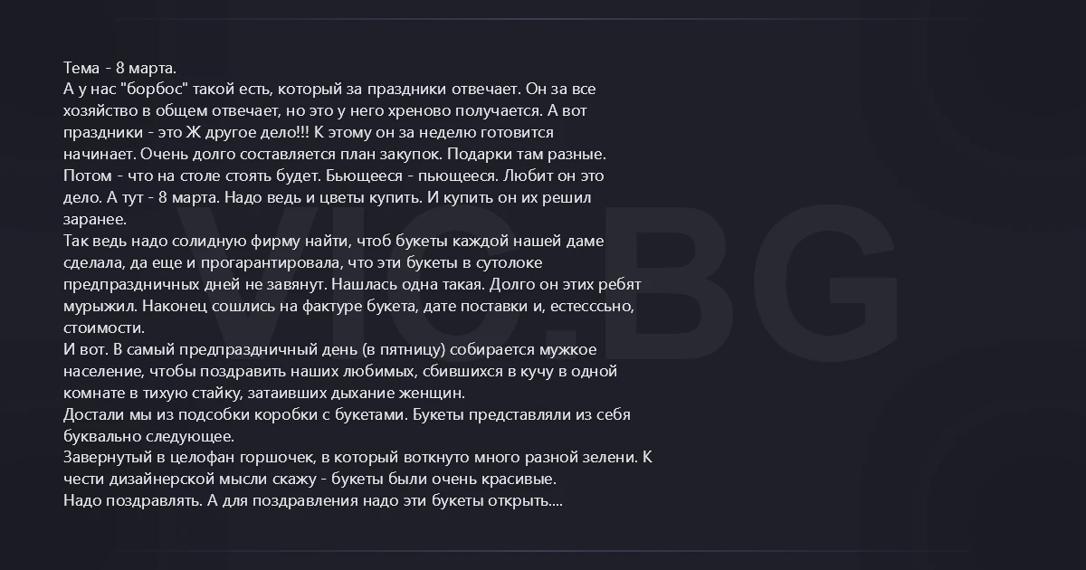 дело. А тут - 8 марта. Надо ведь и цветы купить. И купить он их решил