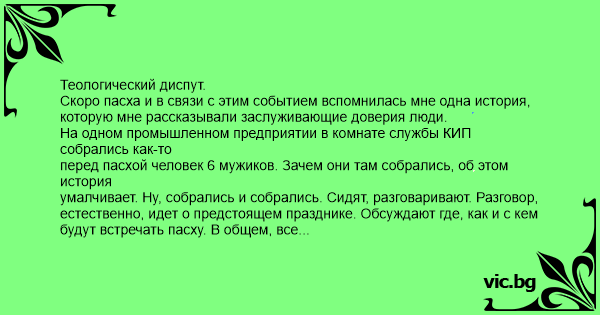 В общем, разгорелся настоящий теологический диспут. Страсти при этом