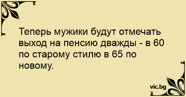 Теперь мужики будут отмечать выход на пенсию дважды - в 60 по старому стилю в 65 по новому.