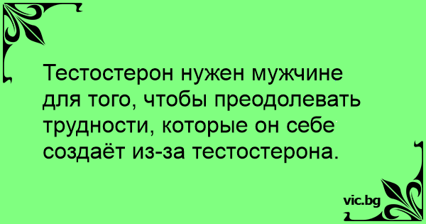 Тестостерон нужен мужчине для того, чтобы преодолевать трудности, которые он себе создаёт из-за тестостерона.