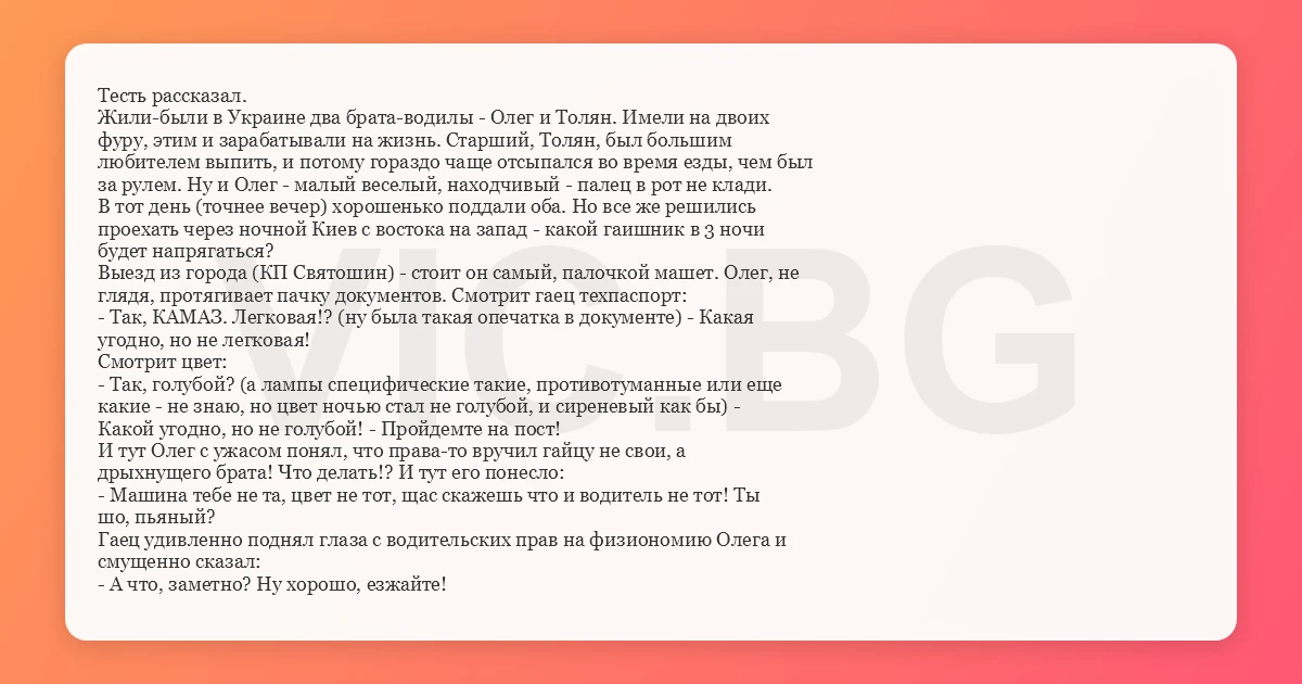 Жили-были в Украине два брата-водилы - Олег и Толян. Имели на двоих