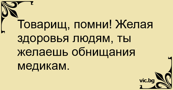 Товарищ, помни! Желая здоровья людям, ты желаешь обнищания медикам.