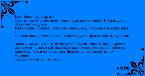 маршрутке подходит гай, открывает дверь и видит меня, сидящего на