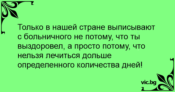 Только в нашей стране выписывают с больничного не потому, что ты выздоровел, а просто потому, что нельзя лечиться дольше определенного количества дней!