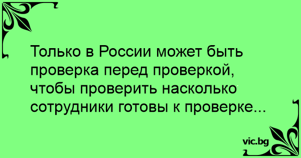 Только в России может быть проверка перед проверкой, чтобы проверить насколько сотрудники готовы к проверке...