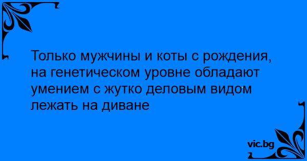Только мужчины и коты с рождения, на генетическом уровне обладают умением с жутко деловым видом лежать на диване