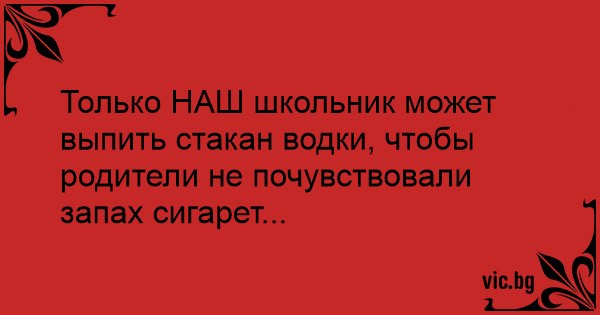 Только НАШ школьник может выпить стакан водки, чтобы родители не почувствовали запах сигарет...