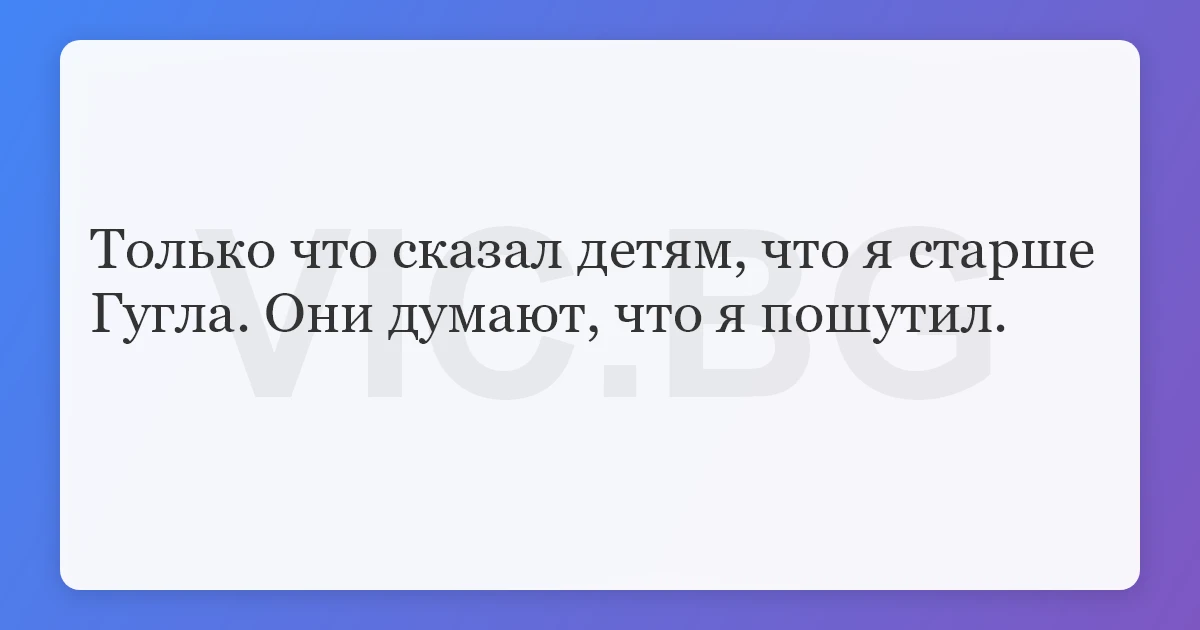 Только что сказал детям, что я старше Гугла. Они думают, что я пошутил.