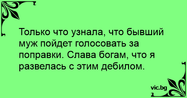 Только что узнала, что бывший муж пойдет голосовать за поправки. Слава богам, что я развелась с этим дебилом.