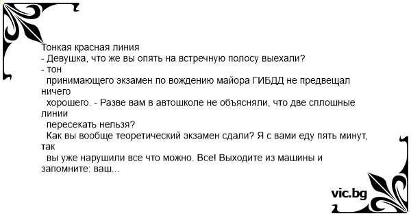 Тонкая красная линия - Девушка, что же вы опять на встречную полосу выехали?
