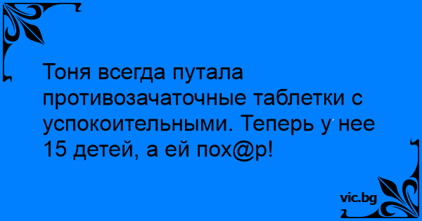 Тоня всегда путала противозачаточные таблетки с успокоительными. Теперь у нее 15 детей, а ей пох@р!