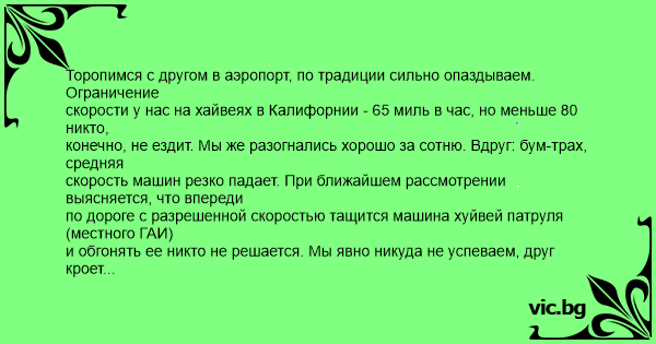 скорости у нас на хайвеях в Калифорнии - 65 миль в час, но меньше 80 никто,