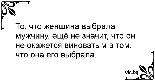 То, что женщина выбрала мужчину, ещё не значит, что он не окажется виноватым в том, что она его выбрала.