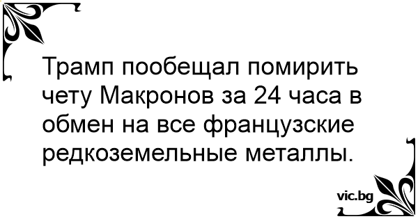 Трамп пообещал помирить чету Макронов за 24 часа в обмен на все французские редкоземельные металлы.