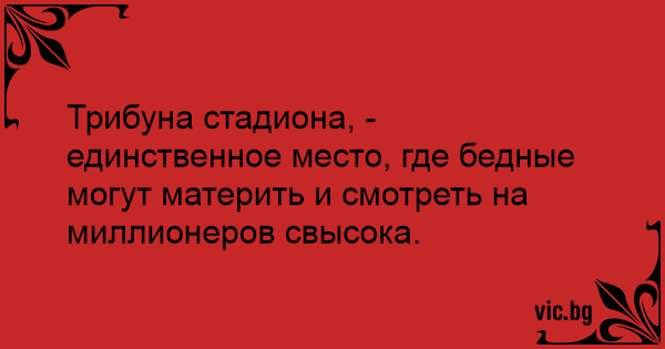 Трибуна стадиона, - единственное место, где бедные могут материть и смотреть на миллионеров свысока.