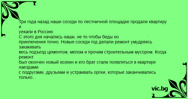 Три года назад наши соседи по лестничной площадке продали квартиру и уехали в Россию.
