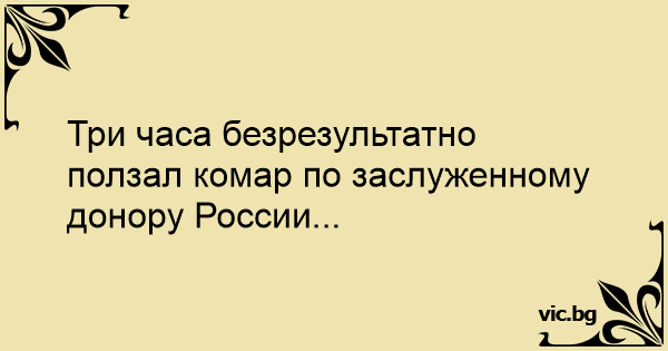 Три часа безрезультатно ползал комар по заслуженному донору России...<br />