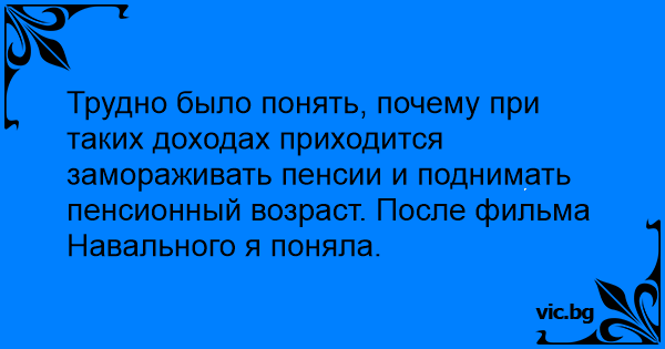 Трудно было понять, почему при таких доходах приходится замораживать пенсии и поднимать пенсионный возраст. После фильма Навального я поняла.