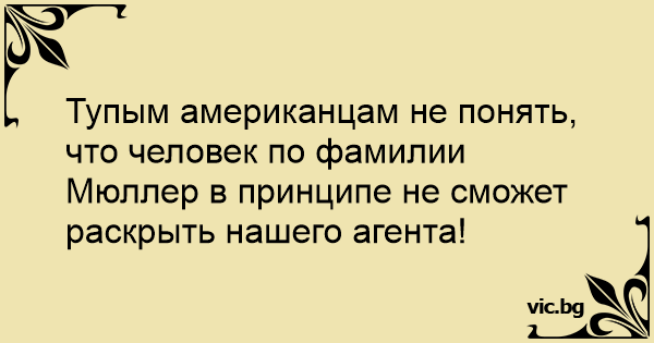 Тупым американцам не понять, что человек по фамилии Мюллер в принципе не сможет раскрыть нашего агента!