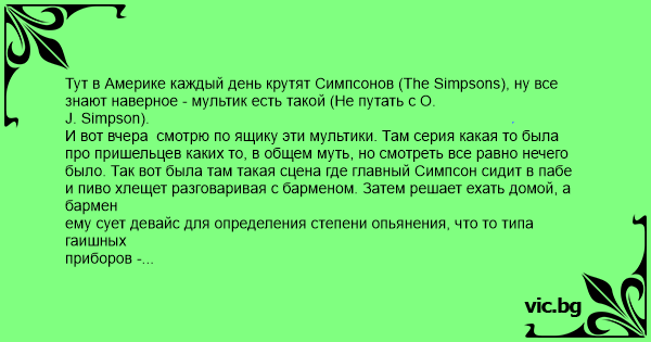 Тут в Америке каждый день крутят Симпсонов (The Simpsons), ну все знают наверное - мультик есть такой (Не путать с O.