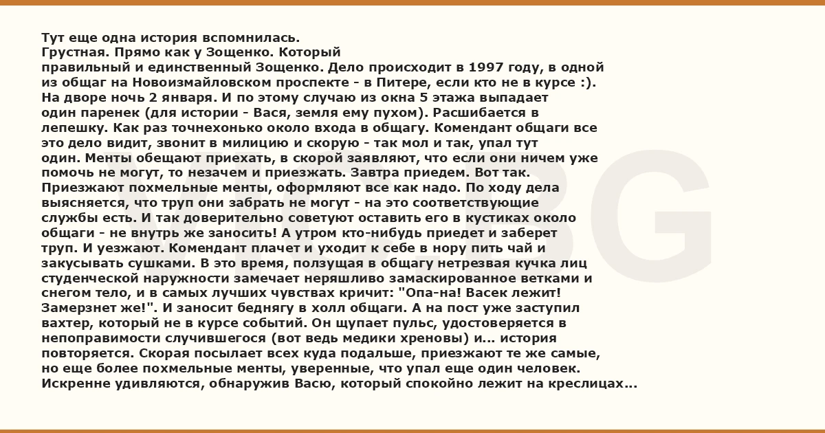 Замерзнет же!". И заносит беднягу в холл общаги. А на пост уже заступил