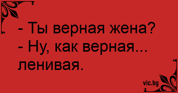 - Ты верная жена?<br />- Ну, как верная... ленивая.