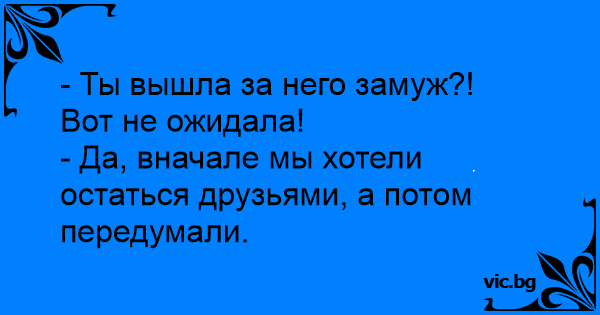 - Ты вышла за него замуж?! Вот не ожидала!