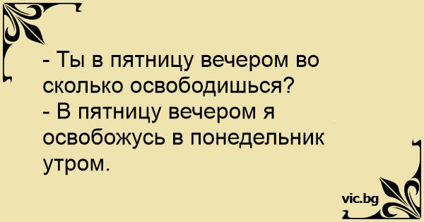 - В пятницу вечером я освобожусь в понедельник утром.