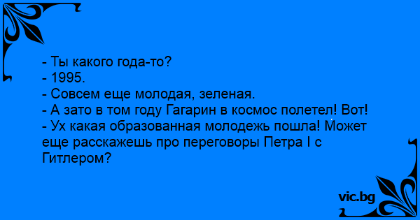 - Ух какая образованная молодежь пошла! Может еще расскажешь про переговоры Петра I с Гитлером?