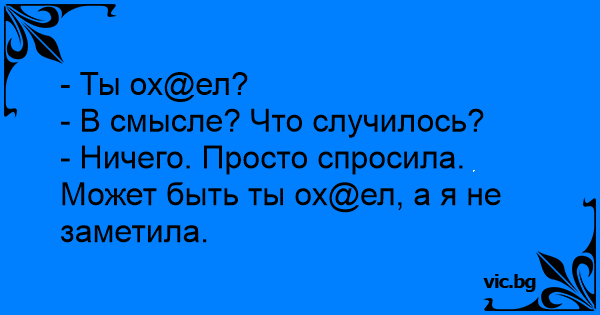 - Ты ох@ел?<br />- В смысле? Что случилось?<br />- Ничего. Просто спросила. Может быть ты ох@ел, а я не заметила.