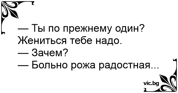 — Ты по прежнему один? Жениться тебе надо.