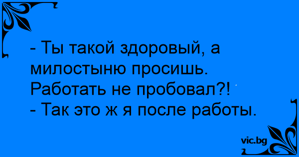 - Ты такой здоровый, а милостыню просишь. Работать не пробовал?!
