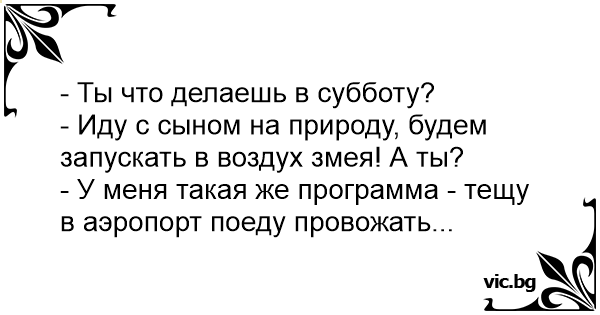 - У меня такая же программа - тещу в аэропорт поеду провожать...