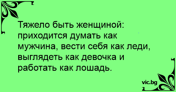 приходится думать как мужчина, вести себя как леди, выглядеть как девочка и работать как лошадь.