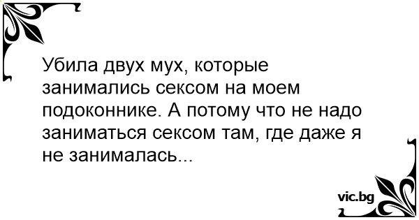 Убила двух мух, которые занимались сексом на моем подоконнике. А потому что не надо заниматься сексом там, где даже я не занималась...
