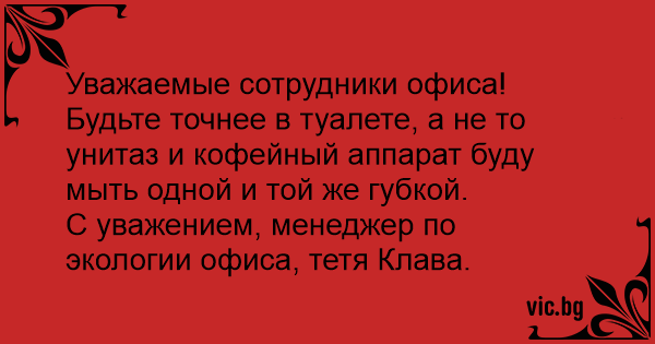С уважением, менеджер по экологии офиса, тетя Клава.