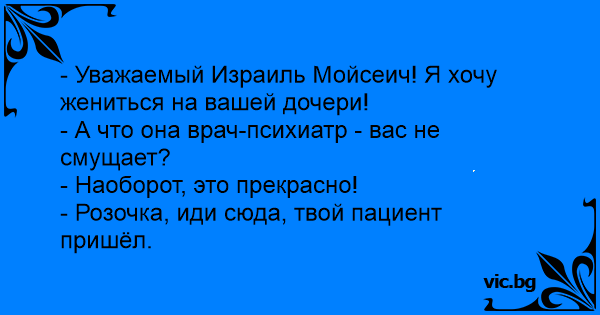 - Уважаемый Израиль Мойсеич! Я хочу жениться на вашей дочери!