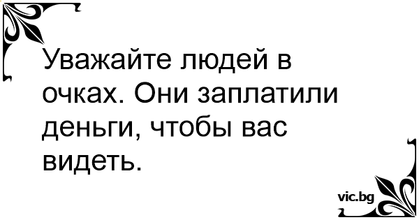 Уважайте людей в очках. Они заплатили деньги, чтобы вас видеть.