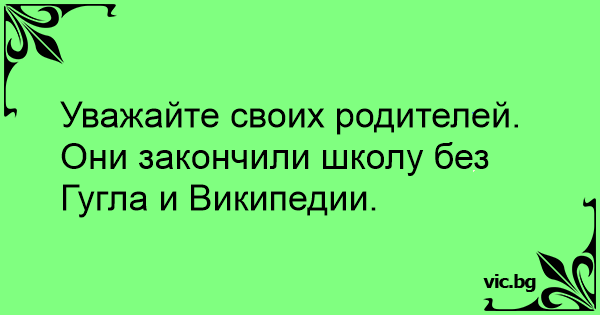 Уважайте своих родителей. Они закончили школу без Гугла и Википедии.