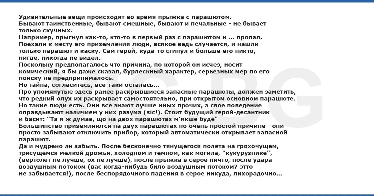 Например, прыгнул как-то, кто-то в первый раз с парашютом и ... пропал.
