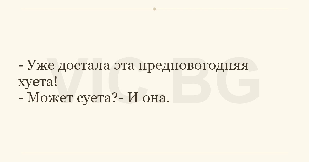 - Уже достала эта предновогодняя хуета! - Может суета?- И она.