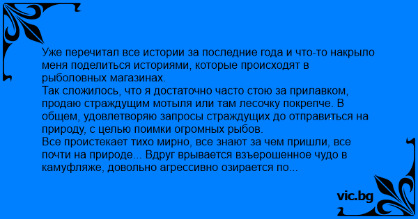 Уже перечитал все истории за последние года и что-то накрыло меня поделиться историями, которые происходят в рыболовных магазинах.