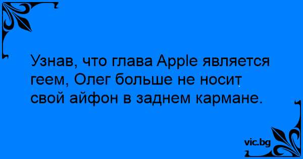 Узнав, что глава Apple является геем, Олег больше не носит свой айфон в заднем кармане.