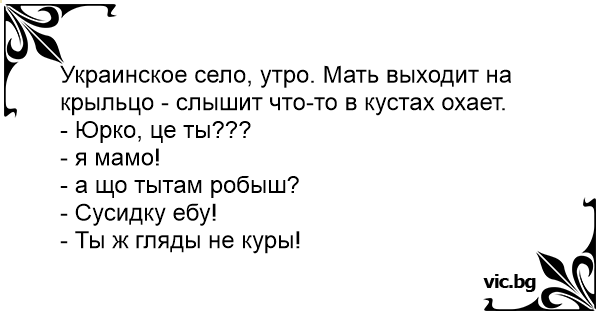 Украинское село, утро. Мать выходит на крыльцо - слышит что-то в кустах охает.