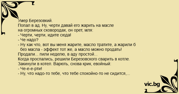 И вот Березовский у Господа, а Сатана в приемной ждет.