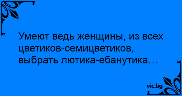 Умеют ведь женщины, из всех цветиков-семицветиков, выбрать лютика-ебанутика… 6 0 0 Анекдоты про девушек