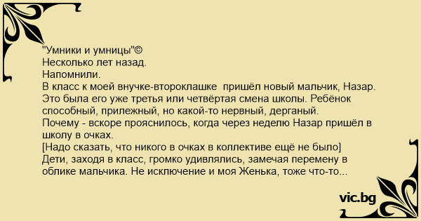 Почему - вскоре прояснилось, когда через неделю Назар пришёл в школу в очках.