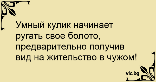 Умный кулик начинает ругать свое болото, предварительно получив вид на жительство в чужом!