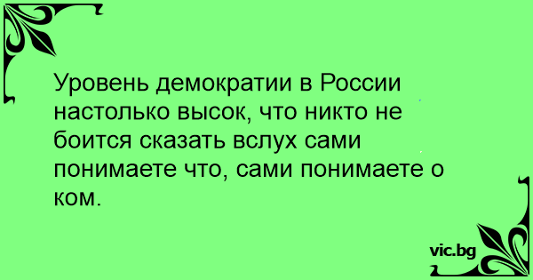 Уровень демократии в России настолько высок, что никто не боится сказать вслух сами понимаете что, сами понимаете о ком.